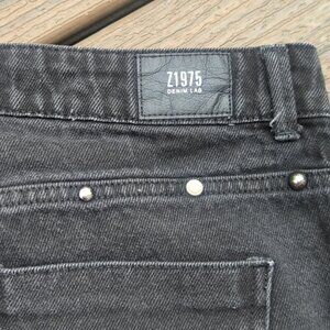 These black jean shorts from Zara boast a stylish distressed design with a frayed hem, perfect for adding an edgy touch to your casual wardrobe. The mid-rise fit and vintage wash enhance their trendy appeal with gorgeous beaded embellishments on front and back.
