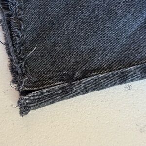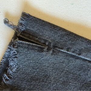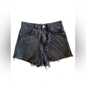 These black jean shorts from Zara feature a high-waisted design with a distressed, raw-cut hemline for a casual, vintage-inspired look. Made from rigid denim, they offer a structured fit perfect for everyday wear.