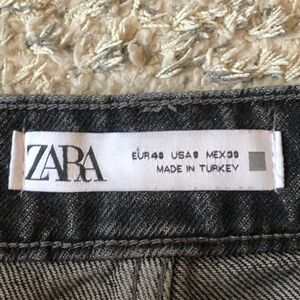 Zara Wide Leg Cropped Jeans High Rise Black Denim Cuffed Women's Size 8