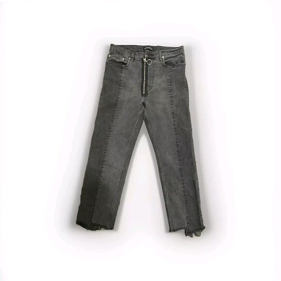 Zara Black Jeans Exposed Zip Patch Work Size USA 4, EUR 36, MEX 26