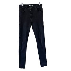Zara Black Denim Skinny Leg Zipper Fly Raw Hem Jeans Size 10