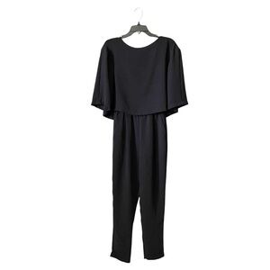 Zara Black Jumpsuit Womens Size XS Cape Split Back Top Pockets Minimalist Classy