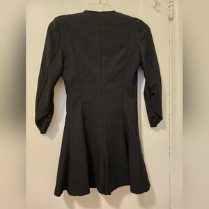 Chic black jumpsuit with a deep V-neck. Features button details and three-quarter sleeves. Perfect for versatile styling.