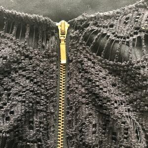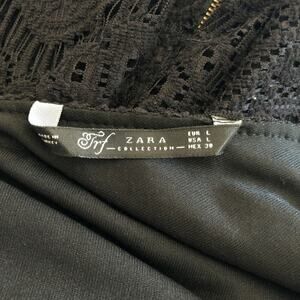 Zara Black Knit Sheath Lace Midi Dress Size L. Top layer is knitted, bottom is a solid black liner, arms are not lined. Zipper in the back. Great condition, no visible stains or defects. The care tag has been removed so material is unknown.