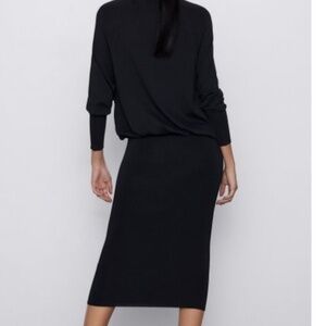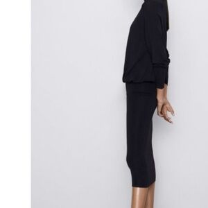 Brand new Zara black knit looking like two-piece set, featuring a relaxed-fit mock neck sweater and a fitted midi skirt. A timeless, versatile outfit that can be dressed up or down.