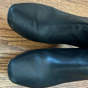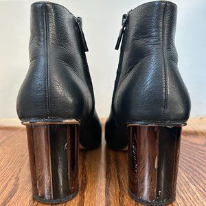 Adorable black leather Zara Ankle Boots Size 37 (6.5M US) - lightly used and in Great Condition. Metallic covered heel- slight scuffing around heel. Heel height approximately 2.5 inches. Inner ankle zipper.