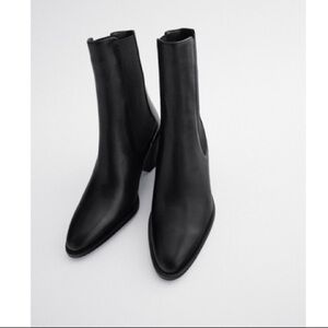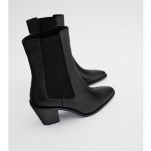 NWOT Zara Black Leather Heeled Cowboy Ankle Boots