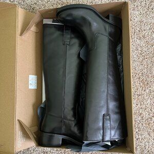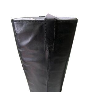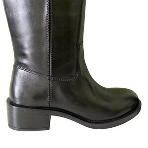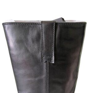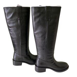 Zara Black Leather Knee High Boots Flat Round Toe Pull Tab Equestrian US Sz 6