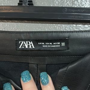Sleek black leather leggings. High-waisted design. Perfect for a chic look.