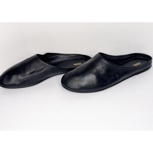 Zara Black Leather Mule Flats Slip On Shoes Backless Comfort Classic 37/6.5-7