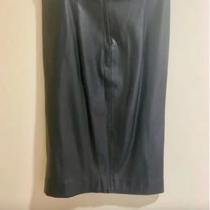 Faux leather midi pencil skirt with a small slit on the side. Zips to close. Really versatile and sleek. Very tiny mark of wear on the waist as photographed. Size Small.