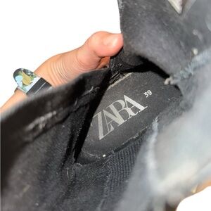 Zara | Black Leather Platform Lug Boots | Pull On | EU 39 / US 8.5