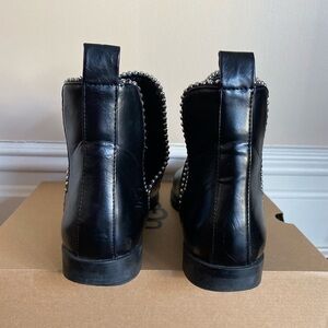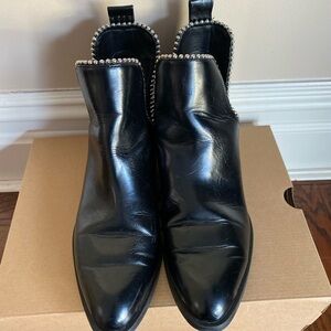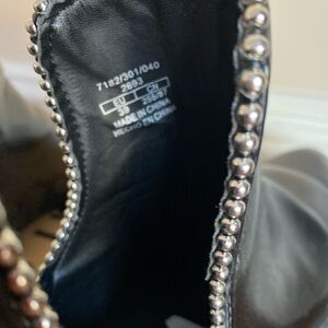 Zara black leather pointed toe booties with silver stud trim. In very good pre-owned condition.