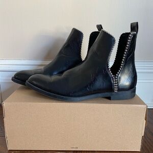 Zara black leather pointed toe booties with silver stud trim. In very good pre-owned condition.