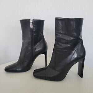 Zara Black Leather Snake Print Embossed Square Toe Heeled Zip Up Boots Size 6.5