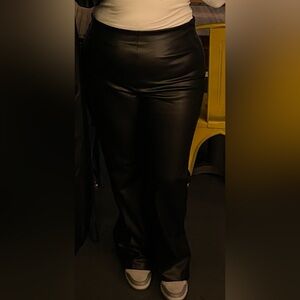 Stylish black leather-look trousers. Ideal for modern outfits.