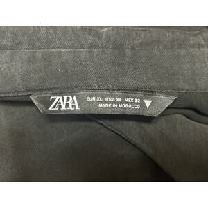 Zara Black Long Sleeve Tie Waist Collared Button Down Mini Shirt Dress Size XL