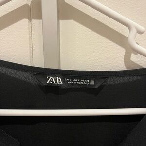 Chic long sleeve dress by Zara. Features a draped neckline. Ideal for stylish occasions.