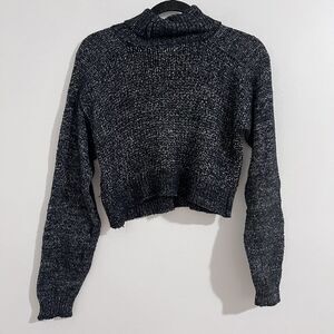 Zara Black Marled Cowl Neck Knit Cropped Sweater Size S Chunky Pullover Top