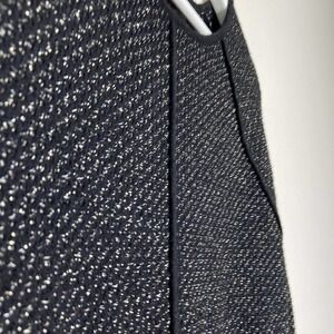 Beautiful dress by Zara Knit. Black dress with metallic silver threading throughout for just a touch of sparkle. Fabric is a tweed knit. Black "piping" details on sleeves and chest. Oversized fit. Super versatile! All measurements are approximate and taken flat.