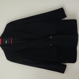 Zara Black Mid Length Basic Blazer Jacket Size Small