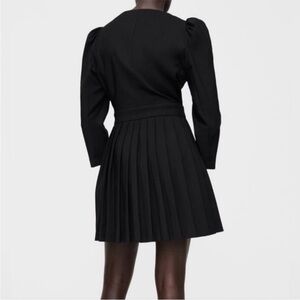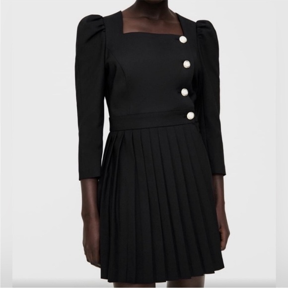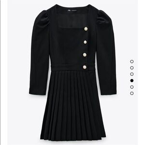 Zara Black Mini Dress with Pleated Skirt and Button Accents