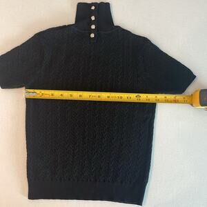 Zara Black Mock Turtleneck Short Sleeve Sweater Top with Pearl Buttons Size S