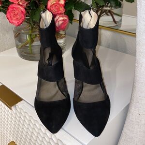 Zara Black Net Mesh clear lace Cage Pointy pointed Heel Ankle booties