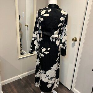 Zara Black & Off White Satin Effect Wrap Floral Print Midi Dress, Size XS