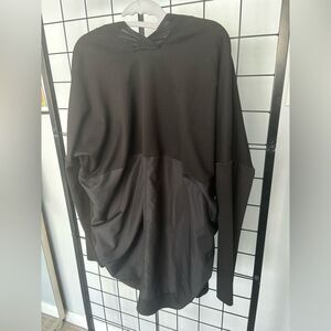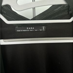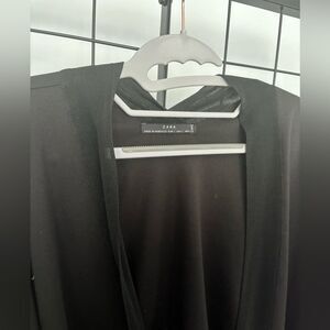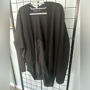 Stylish black open front cardigan by Zara. Cocoon style. Perfect for layering. Made of mixed materials on top and bottom. Drop shoulder style. Excellent used condition.
