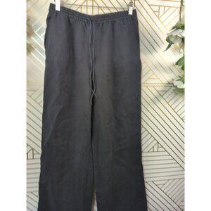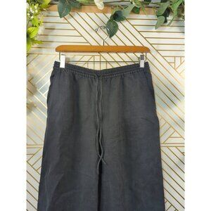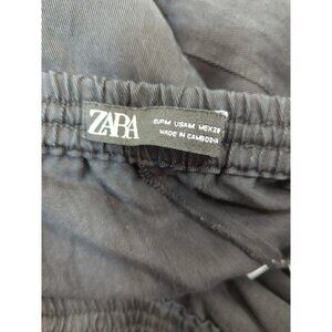 Zara Black Pants High Rise Wide Leg Drawstring Pull On Packets Viscose Sz LARGE
