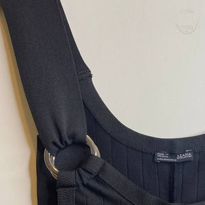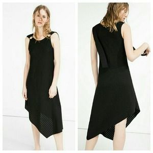 Zara Black Patchwork Large Straps A-Line Asymmetrical Length Dress Small