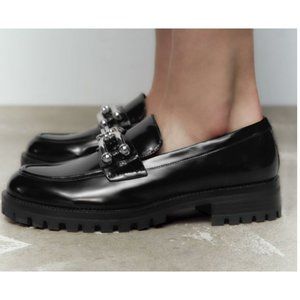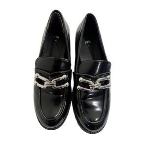 Zara Black Patent MONOLITH Lugsole Platform Loafers w/Silver Accent Sz9 EUR40