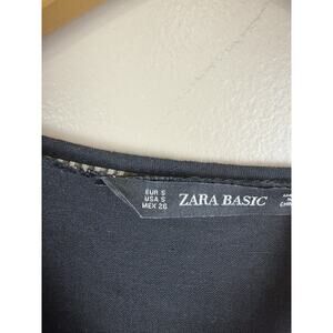 Zara Black Peplum Top Size Small White Embroidered Lace Short Sleeve Blouse