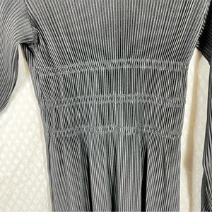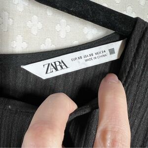 Zara Black Pleated Cinch Waist Long Sleeve Maxi Dress