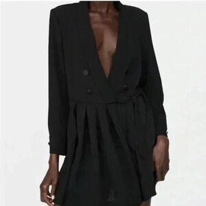 Zara Black Pleated Deep V-Neck Black Button Jumpsuit Romper Women’s Size Small