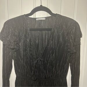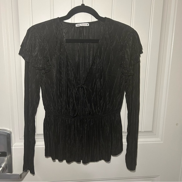 Zara Black Pleated Ruffle Long Sleeve Blouse. In great preowned condition. No visible signs of wear. Feel free to make a reasonable offer through the offer button!