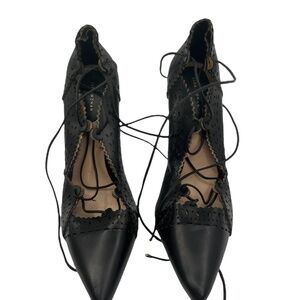 Zara Black Pointed Toe Lace Up Heels Size 40 Women’s