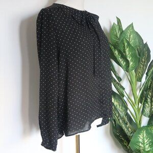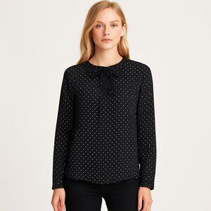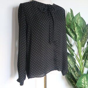 Zara Black Polka Dot Bow Tie Blouse Long Sleeve Small S Classic Office Workwear