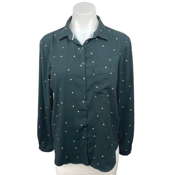Zara Black Polka Dot Button Down Collar Long Sleeve Cutout Back Shirt Blouse Top S
