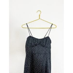 Zara Black Polka Dot Satin Corset Midi Dress Size Medium Minimalist Cocktail