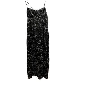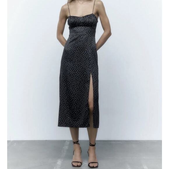 Zara Black Polka Dot Satin Midi Slip Dress Dress Size Medium NEW Strappy Glam