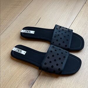 Zara Black Polka Dot Slide Sandals never worn