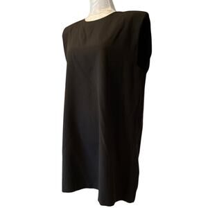 Zara Black Polyester Stretch Cap Sleeve Shift Boxy Mini Dress Size Large LBD