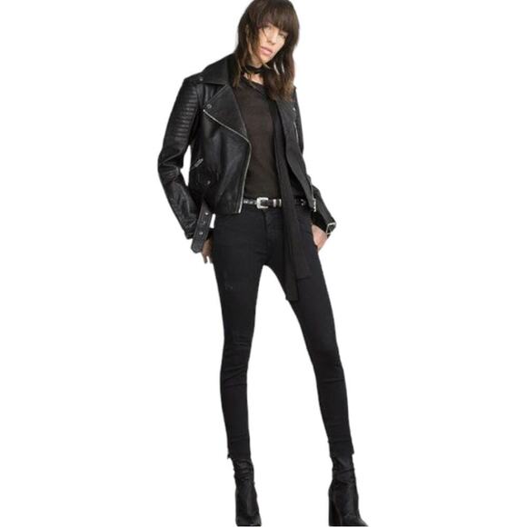 Zara Black Quilted Genuine Sheep Leather Cropped Moto Biker Blogger Jacket XS