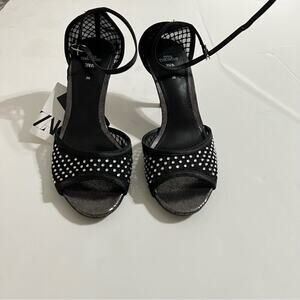 Zara Black RHINESTONE HEELED SANDALS LIMITED EDITION