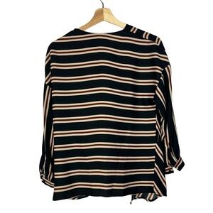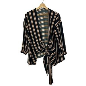 Zara Black & Red Stripe Wrap Around Tie Front Long Sleeve Blouse XS