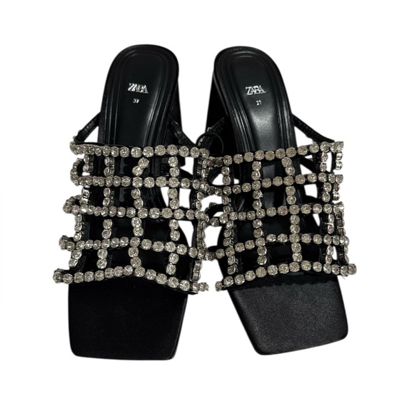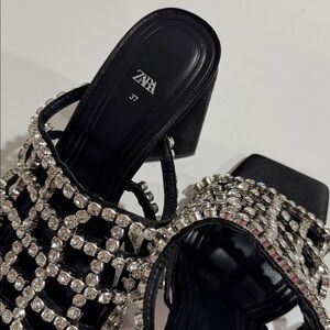 Zara Black Rhinestone Embellished Women's Sandals NWOT