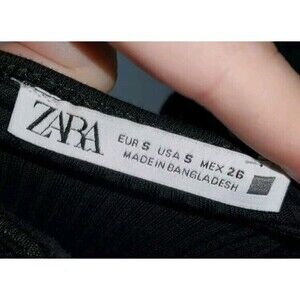 Elevate your wardrobe with this stunning Zara black maxi dress. The ribbed bodycon design is accented with strappy sleeves and a long dress length, making it perfect for any occasion, whether it be a casual day out or a party. The dress features stretch fabric for added comfort and is crafted with solid pattern, spaghetti straps, and strappy sleeve accents. It is a must-have for any fashion-forward woman who wants to make a statement. This dress is available in size small and is made in Bangladesh.