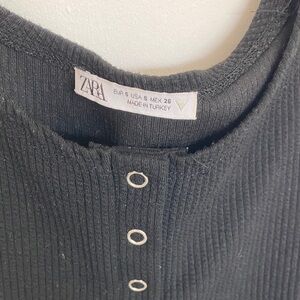 Zara Black Ribbed Button-Front Crop Tank
